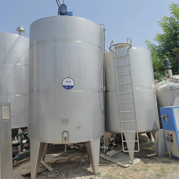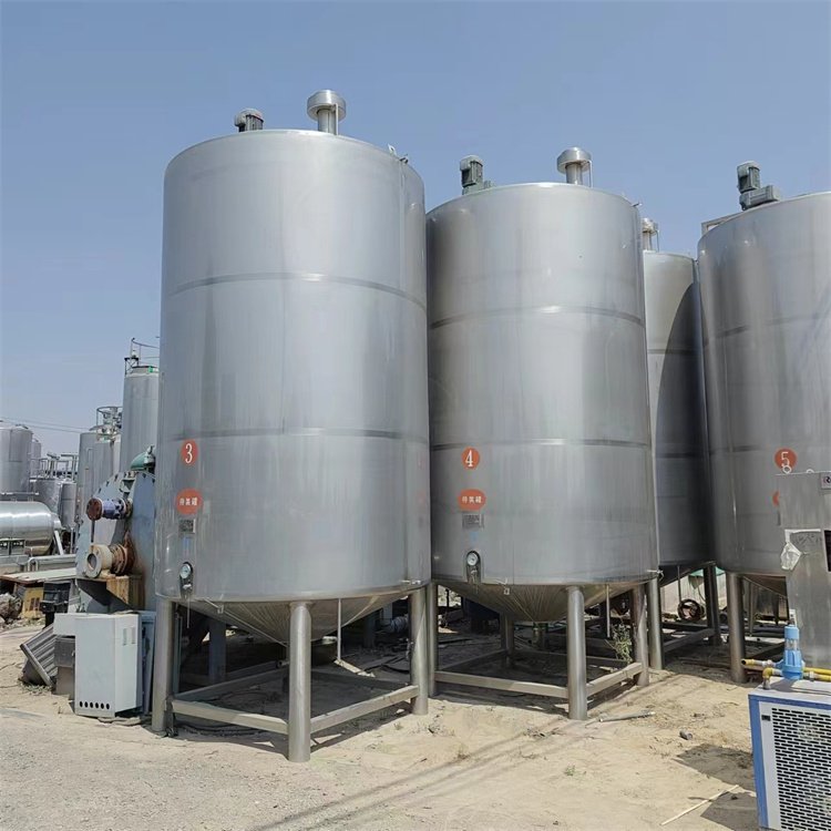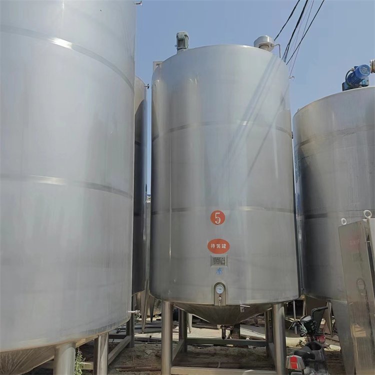 二手不锈钢储罐由贮液容器、罐体、人孔机器设备、温度仪、液位变送器、搅拌机械等组成。二手不锈钢储罐罐体的內胆都是采用304不锈钢板材制成,内部的外表层经过抛光处理,内壁光滑,无凹凸不平的盲点,并且采用氩弧焊机接,接口处也很平整光滑;二手不锈钢储罐外层夹套是不锈钢板材米诺板,和罐体內胆焊接组合成蒸汽室.二手不锈钢储罐设备蒸汽口处配有停止阀门、蒸汽疏水阀等。